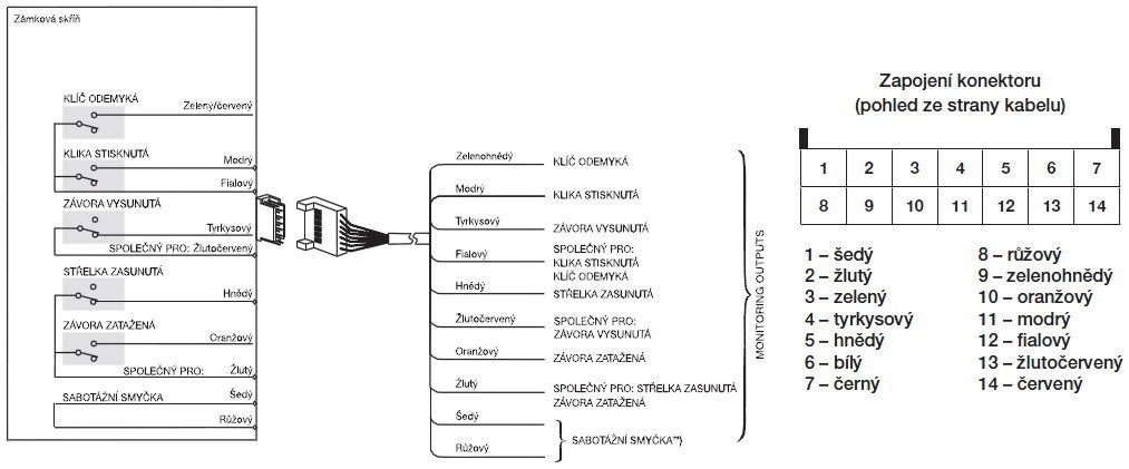 Možnost monitorování činnosti zámku - jen typ EL260 "Signalizace" v části "Technická data".