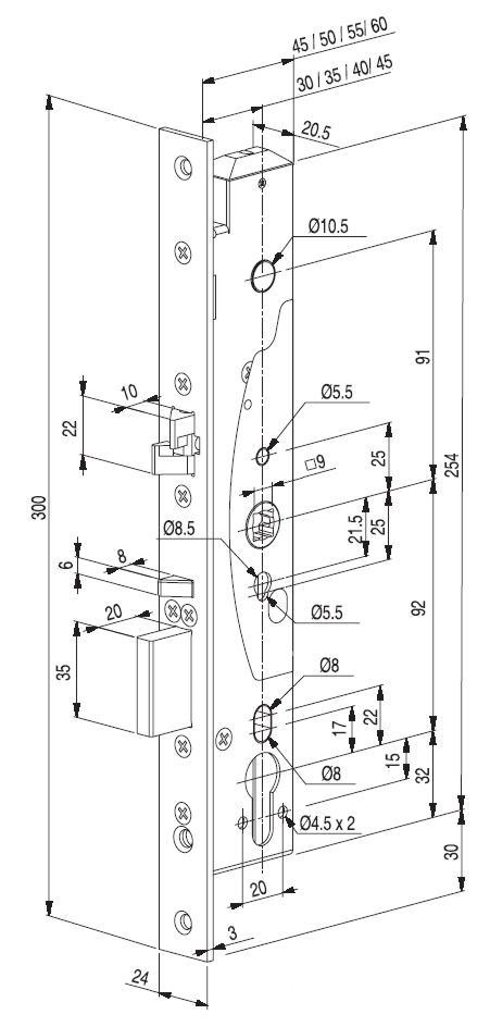 Mechanický samozamykací úzký zámek ABLOY EL060/45/24