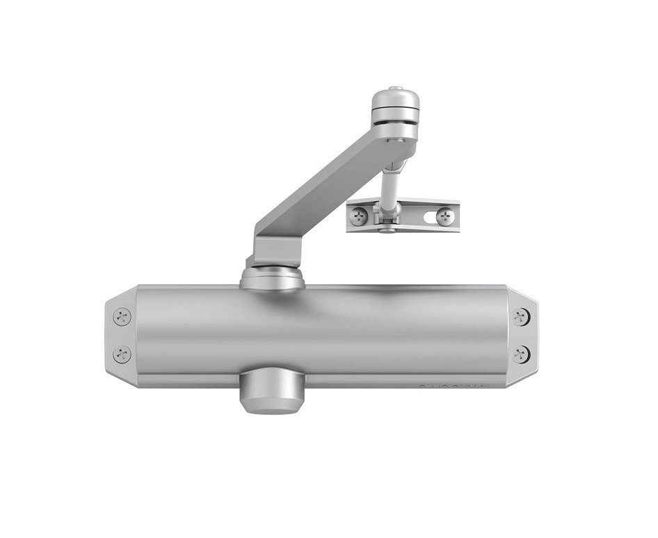 Dveřní zavírač Assa Abloy DC120 stříbrný s aretačním ramenem