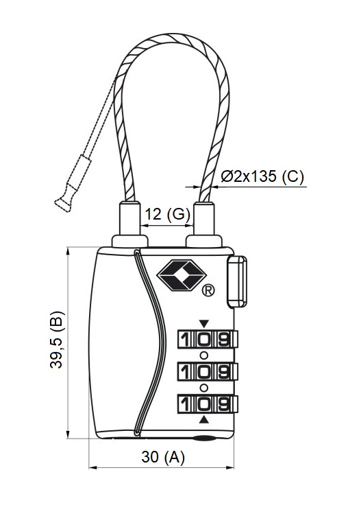 • Zámek je na číselný kód (1000 kombinací), který lze kdykoliv změnit s certifikací TSA.