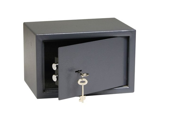 • Malý, bezpečný sejf s tloušťkou dveří 4 mm a 2 mm pláště.