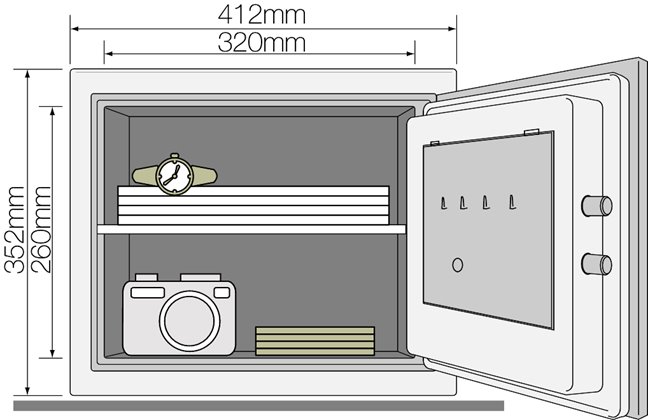 • Sejf má vnitřní zásuvku a vyjímatelnou přihrádku.