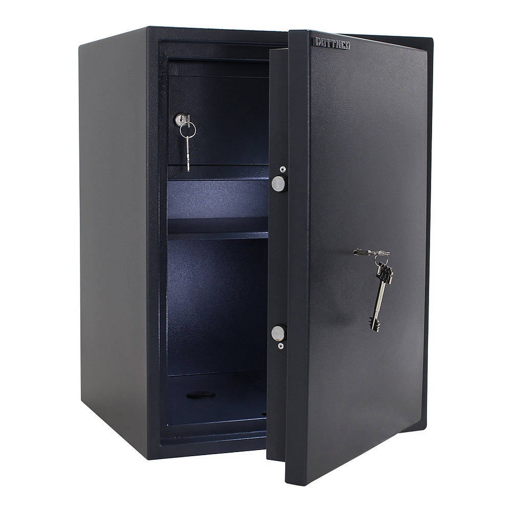 • Trezor je vybaven bezpečnostním motýlkovým zámkem třídy EN-Klasse 1 s pancířovou ochranou z manganové oceli (2x klíč).