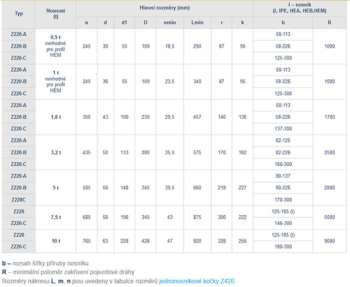 Pojízdný kladkostroj Z220/0,5-10 t je určen pro pojezd po horizontální jeřábové dráze.