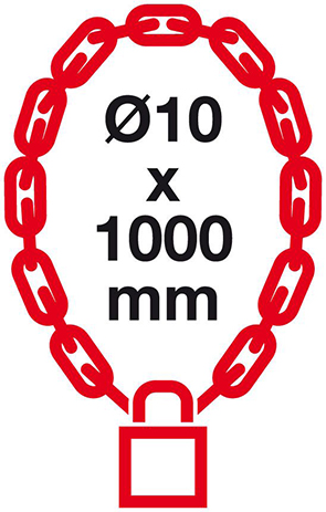 • Bezpečnostní řetěz HARDENED s ochranným krytem z textílie.