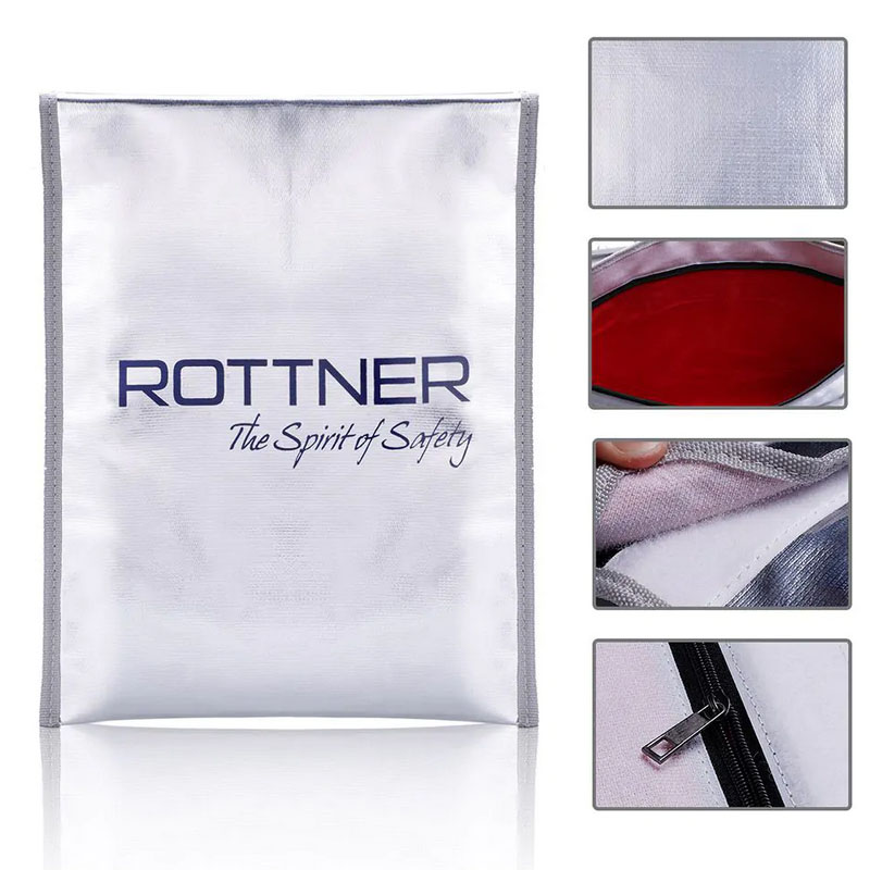 Ohnivzdorná taška vyrobena ze speciálního sklolaminátového vlákna, která obsah tašky ochrání před ohněm, teplem a stříkající vodou. Taška má rozměry DIN A4, vložíte do ní důležité dokumenty, osobní věci a doklady, případně menší šperky a cennosti. Vše pěkně pohromadě zazipsujete suchým zipem a následně klasickým zipem, aby se uloženým věcem nic nestalo. Ohnivzdorná taška je určena i pro použití v sejfech a trezorech, které nemají ohnivzdornou ochranu. Díky vnitřnímu polstrování a rozměrům A4 je možné v tašce přenášet i notebooky nebo tablety, které tak budou spolehlivě chráněny.