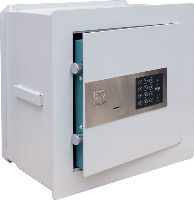 • Luxusní sejf do zdi z kvalitní oceli (4 mm) s policemi a vnitřním osvětlením na elektronický zámek.