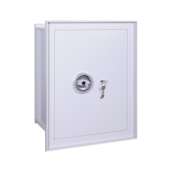 • Dvouplášťový stěnový trezor certifikovaný v I. bezpečnostní třídě s tloušťkou přední části dveří 8 mm (ocel).