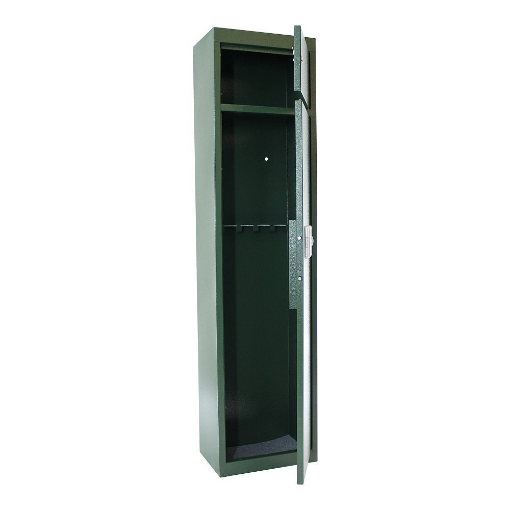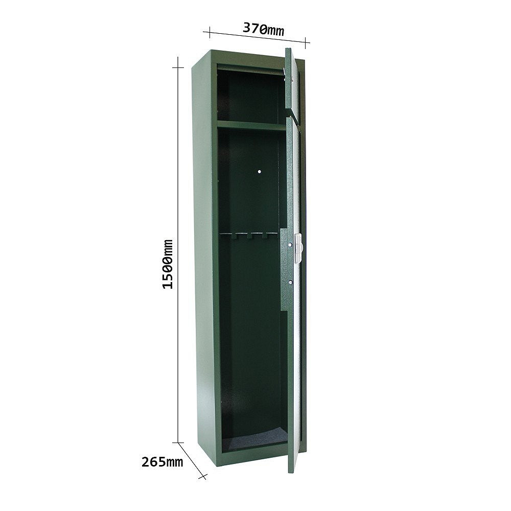 • Jednoplášťová (0,7 mm) skříň pro pět dlouhých zbraní, která umožňuje uzamykání munice v separátní schránce výšky 250 mm (19,5 l) ve standardním provedení trezoru.