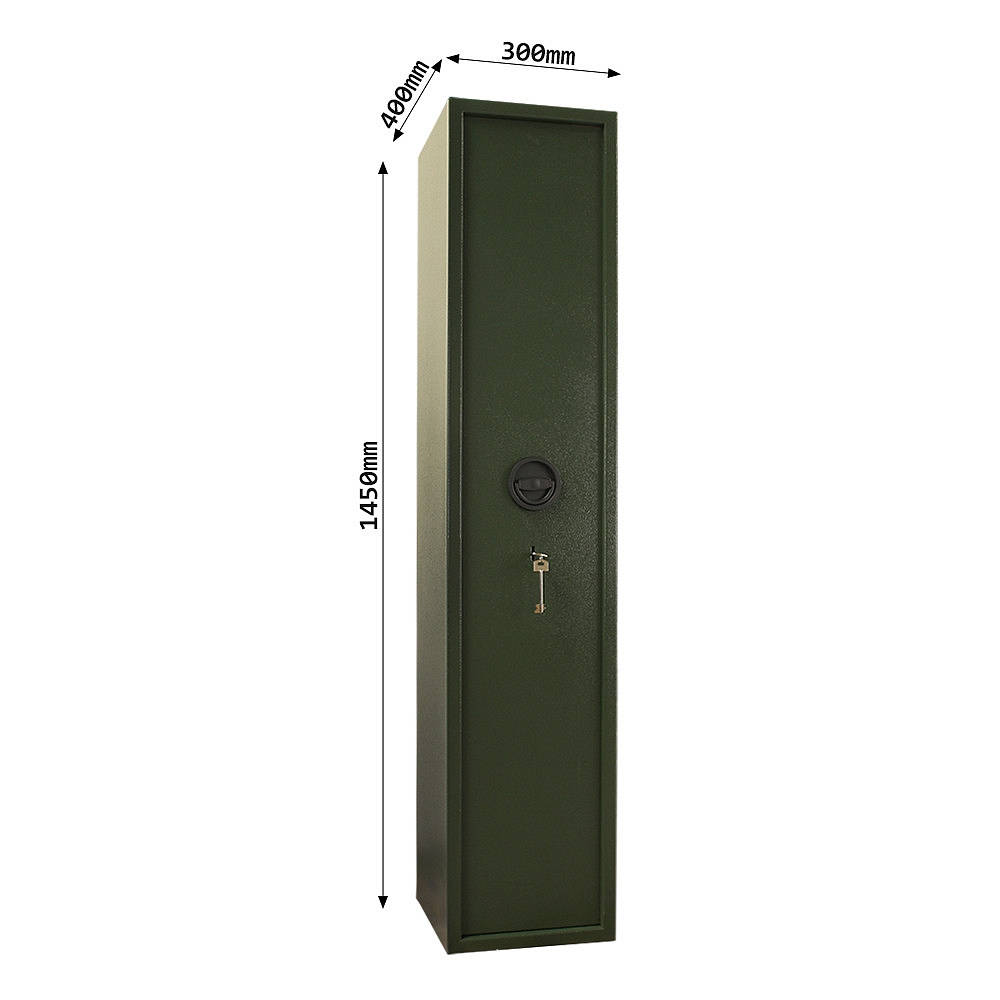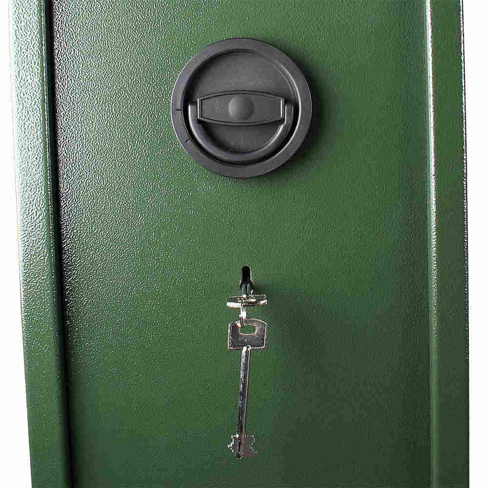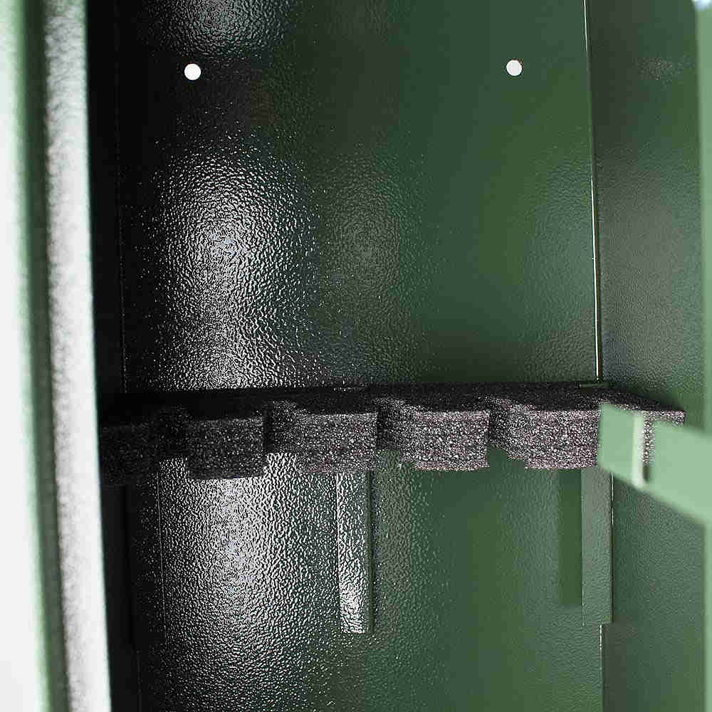 • Uvnitř se nachází 150 mm vysoká schránka o objemu 14 l na klíč a opěrka na 5 dlouhých (max. 1290 mm) zbraní.