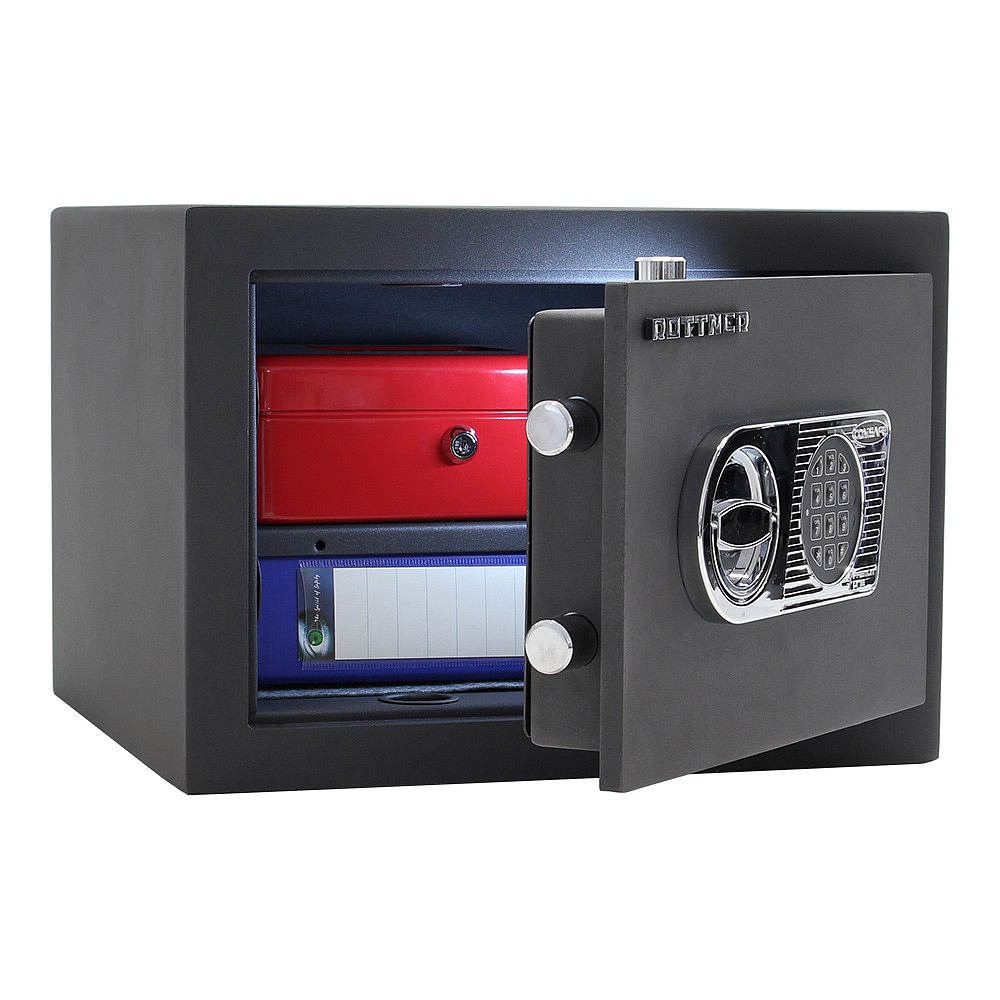 • Dvouplášťový nábytkový trezor s tloušťkou dveří 12 mm je odolný proti vloupání a menšímu ohni.