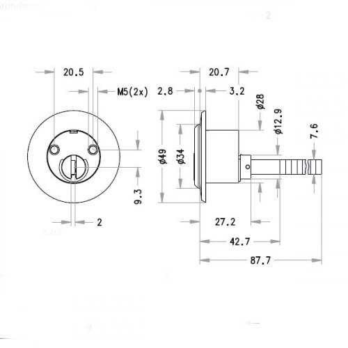 • Ocelové táhlo o průřezu 2 x 7 mm je spojeno s bubínkem a na svém volném konci zapadá do unašeče vlastního zámku.